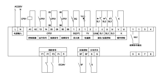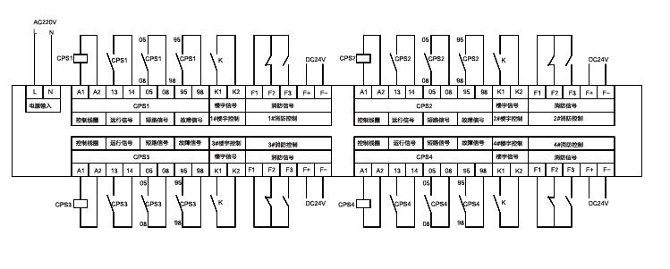 控制模塊:分為主模塊與輔助模塊,它的作用是實現CPS(KB0)的各種工作狀態和其它控制輸入信號的巡回檢測,保證其安全可靠的運行。可查詢CPS(KB0)運行狀態觸點、控制線圈、消防信號、應急信號、自動信號、樓宇信號、消防栓等狀態,并根據預先設定的程序進行工作。