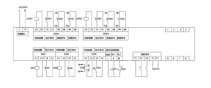 新式的端子接線方式:在控制與保護模塊上直接標明輸入的信號端子號,例如:CPS1 A1.A2;CPS1 05.08等。無需對線號進行編制或對照原理圖出接線圖,簡單快捷,不會出現人為的接線故障。如果在是使用過程中出現故障后,可根據操作顯示器的故障原因對照相應的接線端子排查故障即可。