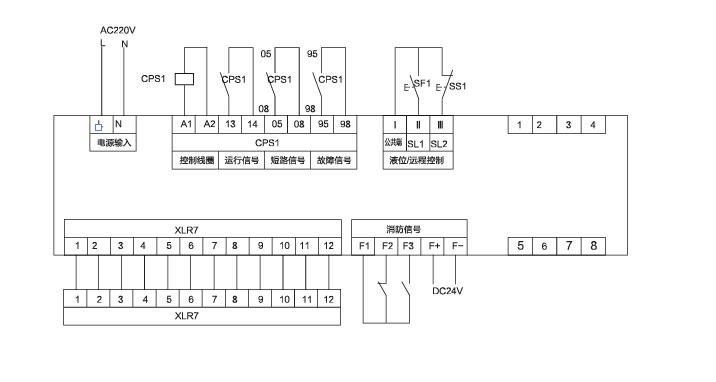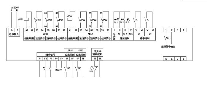 (2) 自帶自動信號輸入端口,例如液位信號SL1,SL2,SL3;樓宇信號K1,K2;消防信號F1,F2,F3等。